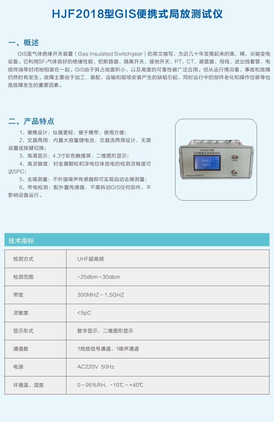 HJF2018型GIS便携式局放测试仪