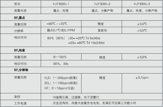 HJ3000系列SF6气体综合测试仪之所以有优秀的性能,是因为全部采用了国外最优秀的传感器。湿度采用芬兰维萨拉的传感器;纯度采用德国传感器;分解产物采用进口美国德康SF6专用的传感器。该仪器采用大液晶中文显示,实时显示各种参数,全程傻瓜式的操作,海量信息存储,内置充电电池,交直流两用。被业内人士评为高科技、节约环保型仪器。