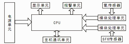 ZB-01型SF6开关室环境智能化监控系统(一下简称装置)正是为了满足电力安全生产的这一需求应运而生的。整个系统有一台主机、若干只气体检测单元和温湿度检测单元组成(具体数量根据实际使用开关时的开关数量和空间大小而定);气体检测单元安装在SF6开关下方的氧气浓度和SF6气体的浓度;主机具有人体红外线检测、语音提示和语音报警等功能;主机通过RS-485总线轮询、显示各气体传感器的氧气浓度数据和SF6气体含量状况,并在危险情况时给出语音报警信息以及控制风机工作;还可以通过RS-485总线实现与上位计算机的数据和信息交换,组成计算机对SF6开关室环境在线自动监控系统。